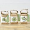 Take your taste buds on a journey or fill your senses with the wonders of nature! Packed and tied in the traditional style of Japanese rice bags, these handsome paper bag growing kits are delightful gifts featuring exotic plants to harvest and eat. Each kit include potting mix, seeds and instructions. Once established, the plants can be easily transplanted to larger pots or the garden.