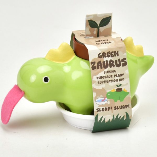 Die neuen Grünen Zaurus sind ein wunderbares Durcheinander aus der Jurazeit und den Persern. Diese farbenfrohen und niedlichen Dino Kreaturen haben Zungen, die Wasser auffangen und die kostbare Pflanze auf ihrem Rücken versorgen. GreenZaurus besteht aus glasierter Keramik und ist in drei Ausführungen erhältlich und wird in einer ausgewählten Kartonverpackung geliefert. Jeder Grüne Zaurus wird mit einer beliebten Pflanze (Süßer Basilikum, Glücksklee oder Walderdbeere), Torfkübel, Samen, Tablett und Anleitung geliefert. Tretet beiseite, ihr staubigen, alten Dinos, es ist die Zeit des grünen Zaurus.