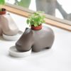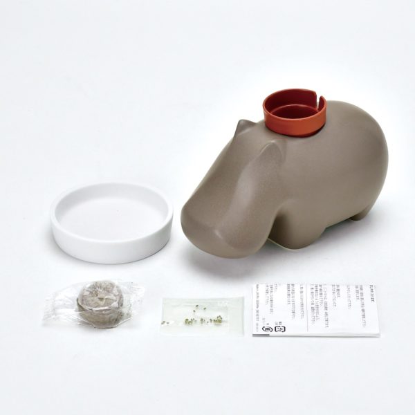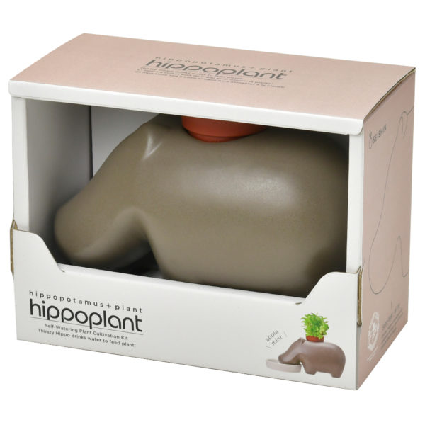 The new Hippoplant is sure to make a big splash. These enchanting giants have been transformed into a self-watering plant growing kit. Similar our popular Eleplant, Hippoplants “drink” water up from a tray to feed the plant on its back. It comes with a ceramic watering tray, growing puck, seed pack for Apple Mint and instructions. Each Hippoplants is handmade with an attention to detail in Seto, Japan.